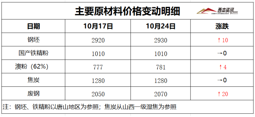 (1)上周?chē)?guó)內(nèi)建筑鋼材行情震蕩見(jiàn)漲,截至10月24日,西本指數(shù)報(bào)在3430,周環(huán)比上漲30。