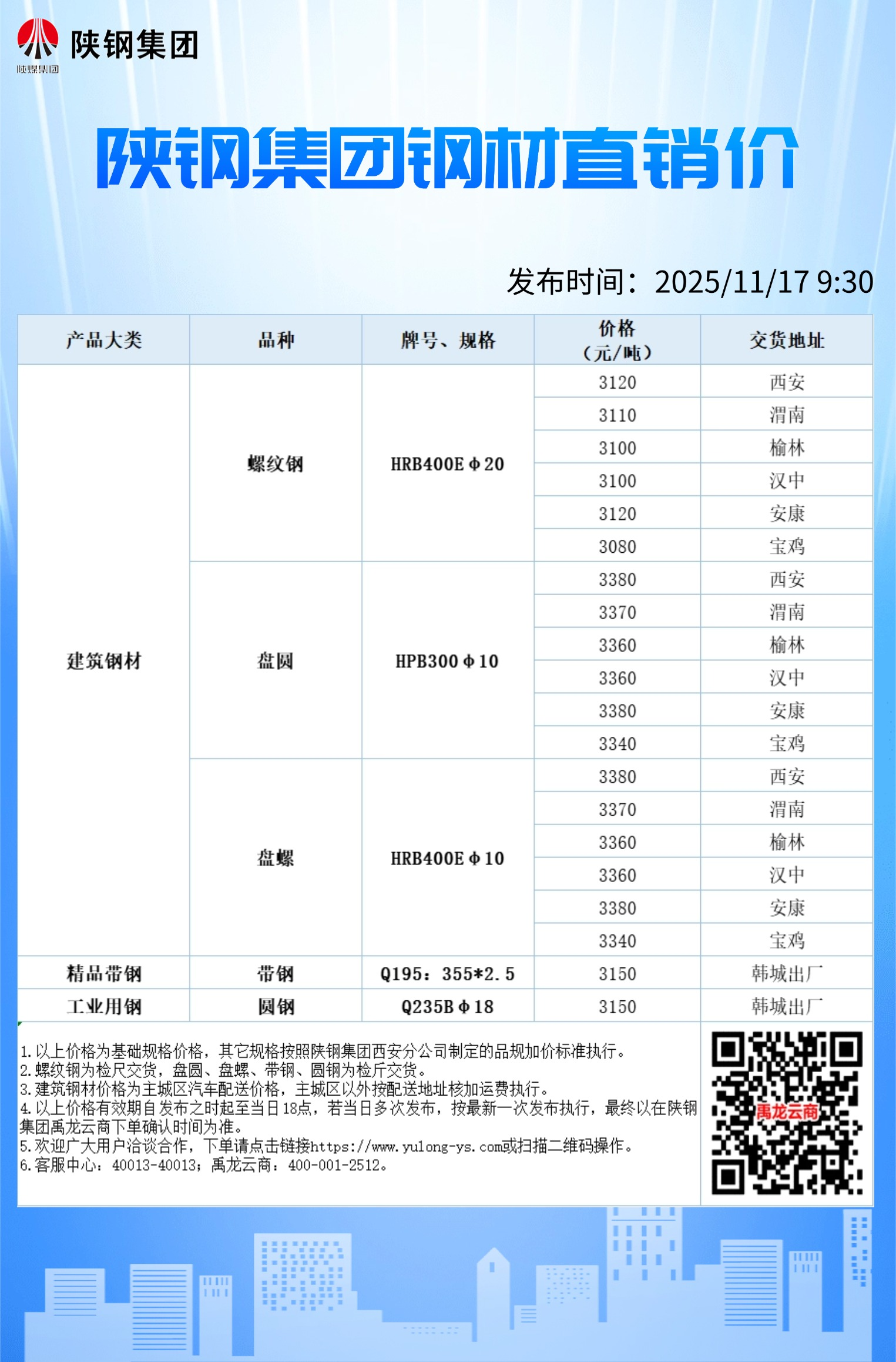 · 2025-11-1711月16日陜鋼集團(tuán)鋼材直銷價(jià)格信息