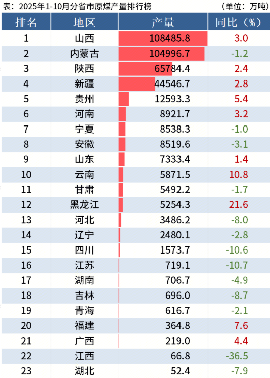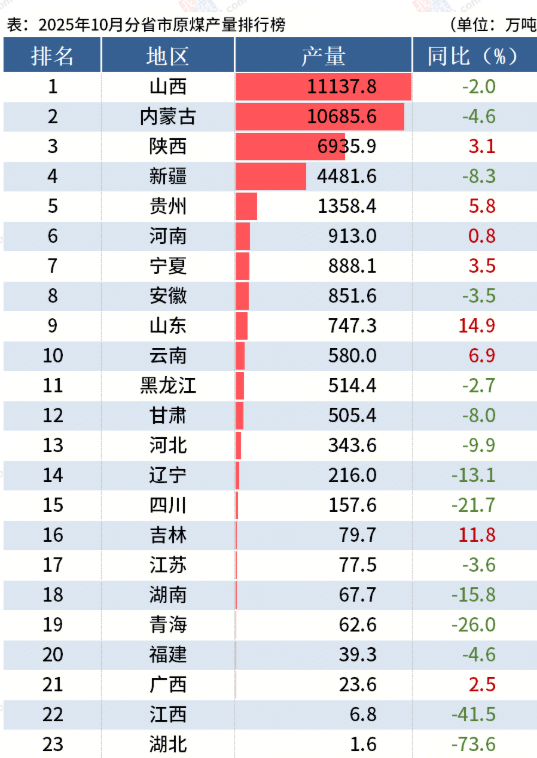 · 2025-11-181-10月原煤產(chǎn)量前十名企業(yè)排名公布