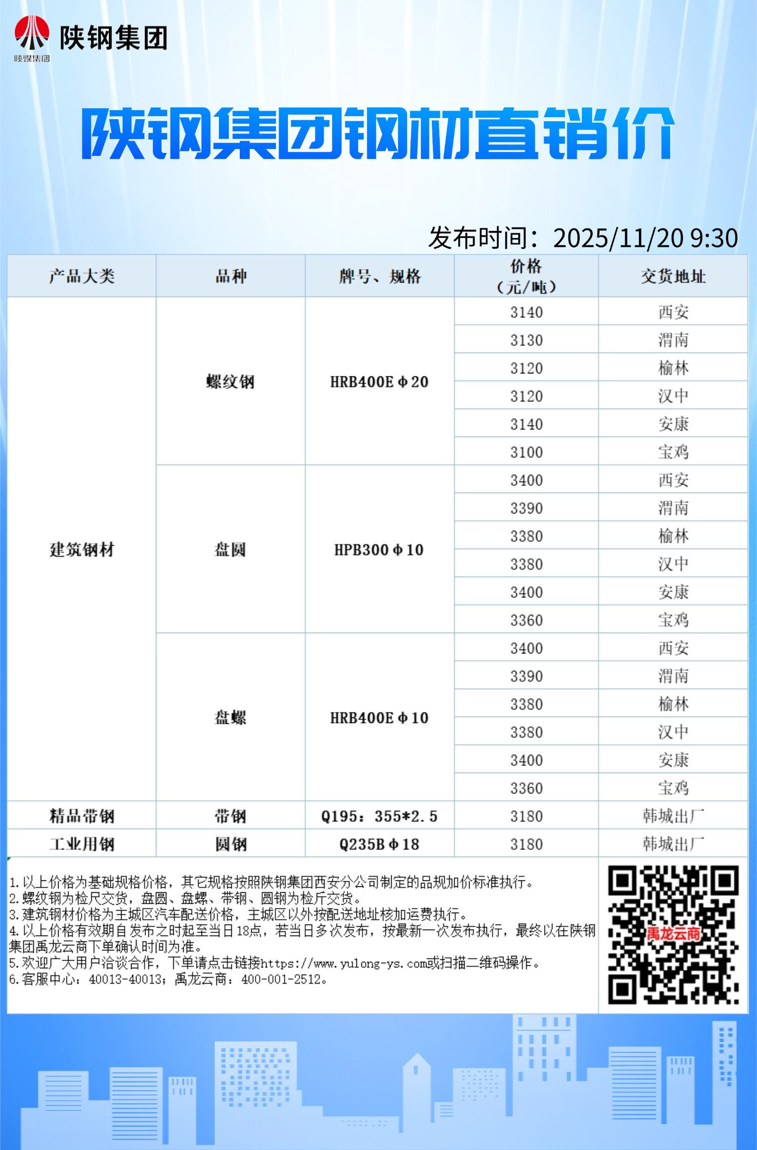 摘要:11月20日陜鋼集團鋼材直銷價格信息