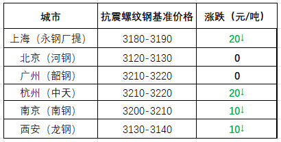 截至午間,國內(nèi)部分市場螺紋鋼(抗震)基價(jià)如下:上海市場3180-3190元/噸;北京市場3120-3130元/噸;廣州市場3210-3220元/噸;杭州市場3210-3220元/噸;南京市場3200-3210元/噸;西安市場3130-3140元/噸。環(huán)比來看,截至上午收盤,全國主要市場一線品牌價(jià)格多有調(diào)低。