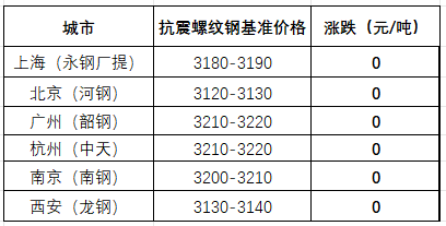 今日行情走勢(shì)為平盤開(kāi)單,據(jù)西本跟蹤統(tǒng)計(jì)的69個(gè)城市建材報(bào)價(jià),開(kāi)盤下跌區(qū)域占比52%,其它市場(chǎng)平穩(wěn),午后相對(duì)穩(wěn)定;截至收盤,上海、杭州、南京等地主導(dǎo)資源價(jià)格波動(dòng)0-10元/噸。據(jù)上海市場(chǎng)反饋,今天庫(kù)提小廠抗震螺紋鋼高低區(qū)間在3070-3080元,廠提永鋼螺紋鋼基價(jià)區(qū)間在3150-3160元/噸。