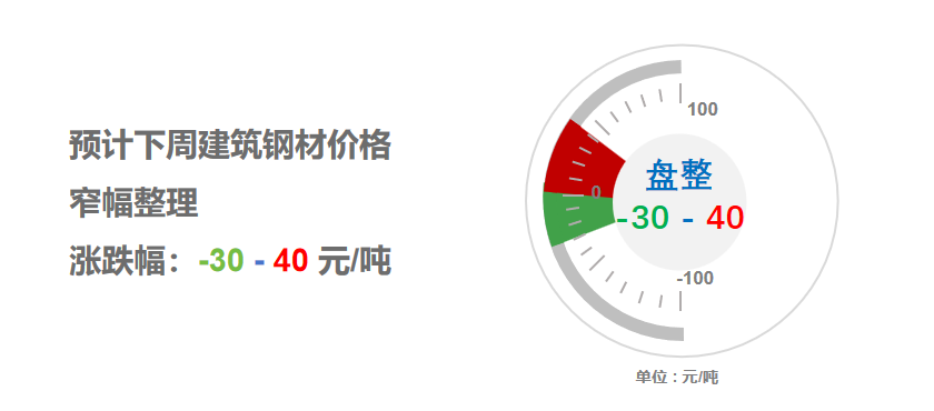 本周氣溫“過山車”模式,北方工地抓緊趕工,南方地區(qū)正常施工,工地資金到位率微增0.14%,表觀需求量環(huán)比增加,螺紋社會(huì)資源環(huán)比下降,多數(shù)商家?guī)齑嫫停糠稚碳屹Y源規(guī)格不全,現(xiàn)貨窄幅震蕩微漲為主??紤],焦炭第四輪提漲落地,長(zhǎng)流程鋼企盈利繼續(xù)惡化,高爐開工率環(huán)比下降;北方季節(jié)性霧霾增多,新一輪環(huán)保督查展開;鋼材出口數(shù)據(jù)下降,期螺合約多空交織,現(xiàn)貨商操作謹(jǐn)慎等,預(yù)計(jì),下周(11月24日-11月28日)市場(chǎng)價(jià)格窄幅整理盤整運(yùn)行,幅度為-30-40元/噸。